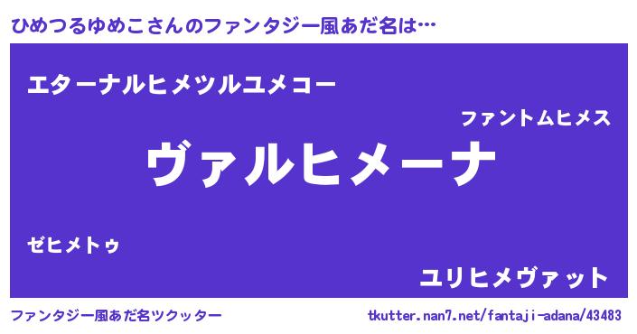 | 男性向けラノベタイトル風あだ名 | 『この素晴らしい世界にひめつるゆめこを!』 |