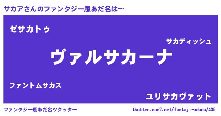 | 男性向けラノベタイトル風あだ名 | 『この素晴らしい世界にサカアを!』 |