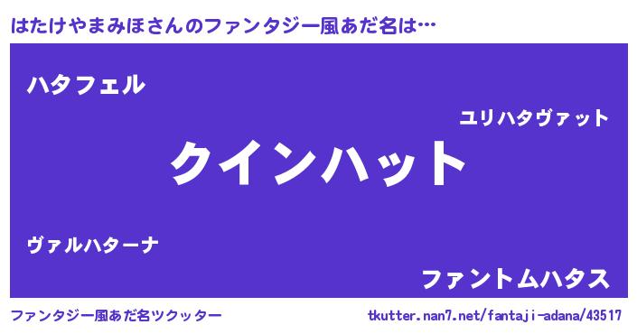 | 男性向けラノベタイトル風あだ名 | 『はたけやまみほに滅ぼされるだけの簡単なお仕事です』 |