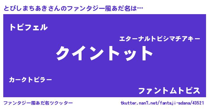 | 欧米人風あだ名 | 『アンジェラ・とびしまちあき』 |