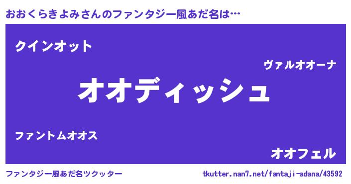 | 男性向けラノベタイトル風あだ名 | 『おおくらきよみという概念が存在しない退屈な世界 』 |