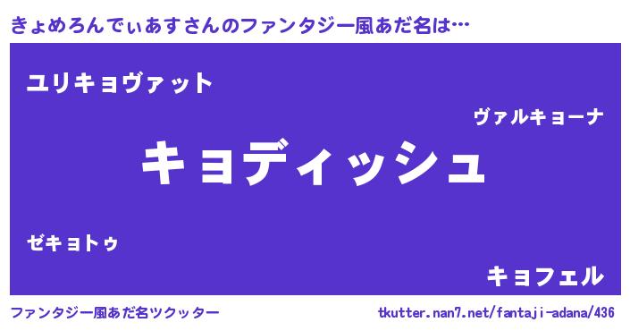 | 男性向けラノベタイトル風あだ名 | 『きょめろんでぃあすという概念が存在しない退屈な世界 』 |