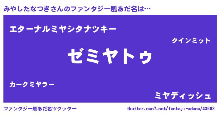 | 意味不明あだ名 | 『自称みやしたなつき』 |