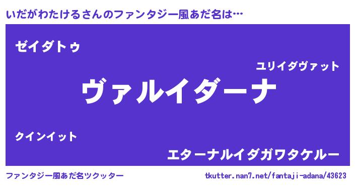 | 意味不明あだ名 | 『住所不定無職いだがわたける(59歳)』 |