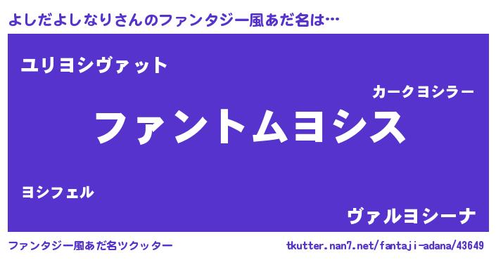 | 意味不明あだ名 | 『とにかく怪しいよしだよしなり』 |