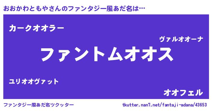 | 男性向けラノベタイトル風あだ名 | 『おおかわともやの嫁は女の子じゃないと思った?』 |
