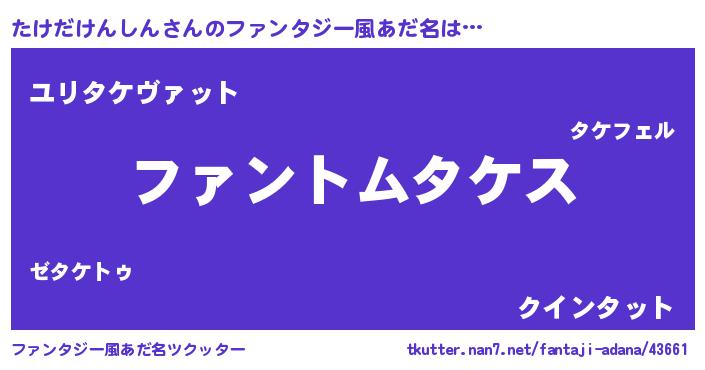| ヒーロー風カッコイイあだ名 | 『幻影騎士タケ』『ネオタケダケンシン』 |