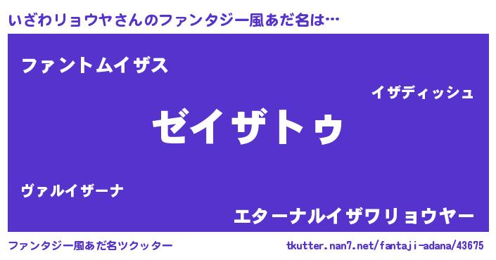 | 男性向けラノベタイトル風あだ名 | 『Re:いざわリョウヤから始める異世界生活』 |