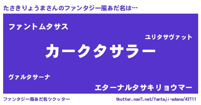 | 伝説のあだ名 | 『孤高の僧侶たさきりょうま』 |