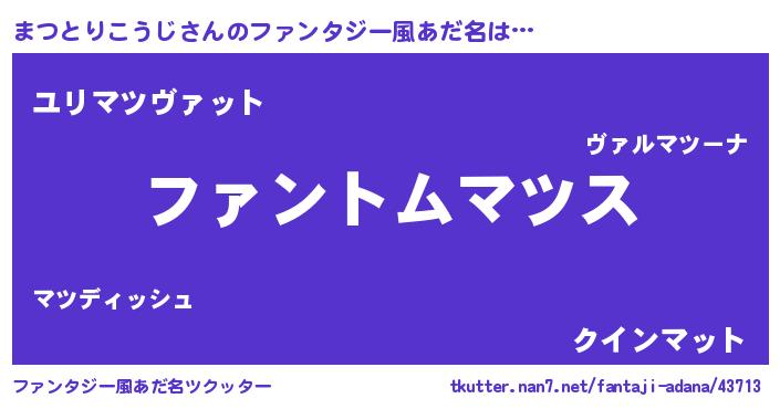 | ヘコむあだ名 | 『まつっちょ』『まつとりこうじ(苦笑)』 |