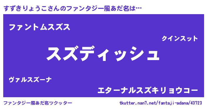 | ヒーロー風カッコイイあだ名 | 『ネオスズキリョウコ』『魔戒騎士スズ』 |