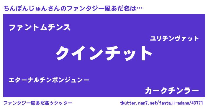 | 女子向けラノベタイトル風あだ名 | 『ちんぽんじゅん恋絵巻』 |