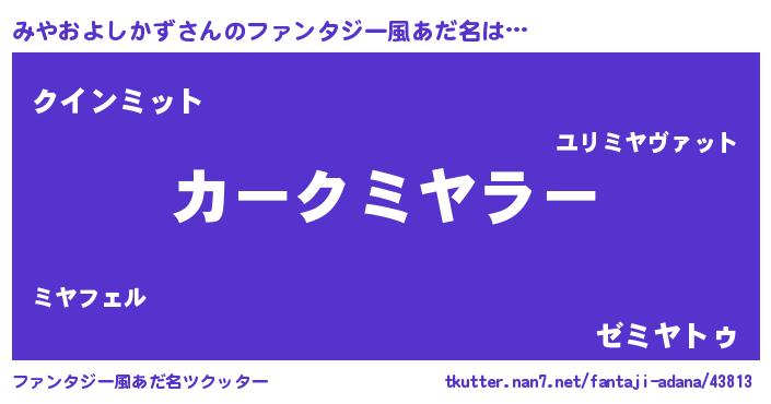 | 男性向けラノベタイトル風あだ名 | 『うちのみやおよしかずが世界を掌握している!』 |