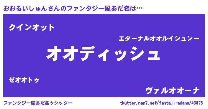 | ヒーロー風カッコイイあだ名 | 『ネオオオルイシュン』『仮面オオダー』 |