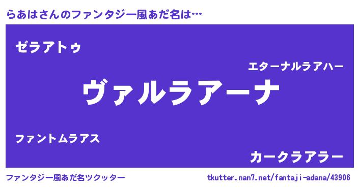 | 男性向けラノベタイトル風あだ名 | 『この素晴らしい世界にらあはを!』 |