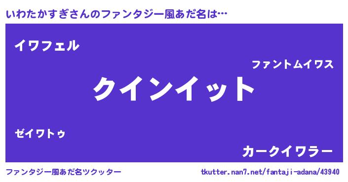 | 男性向けラノベタイトル風あだ名 | 『ノーゲーム・ノーイワタカスギ』 |