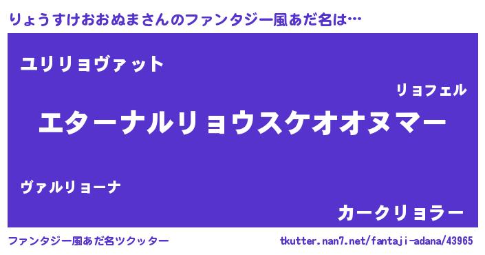 | 女子向けラノベタイトル風あだ名 | 『りょうすけおおぬまの雑貨屋さん』 |