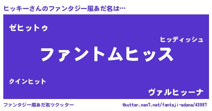 | 女子向けラノベタイトル風あだ名 | 『ヒッキーは平凡を望む』『闇のヒッキー』 |