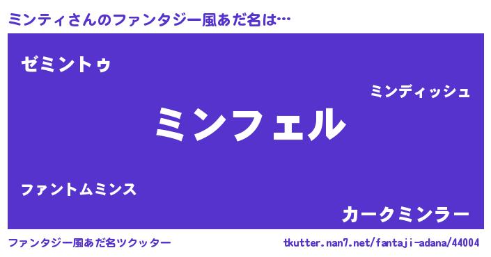 | 意味不明あだ名 | 『ペロリンミンティ』『自称ミンティ』 |