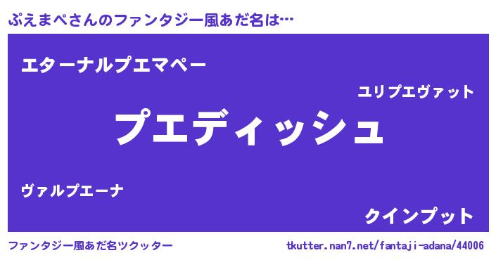 | 意味不明あだ名 | 『永久保存ぷえまぺ』 |