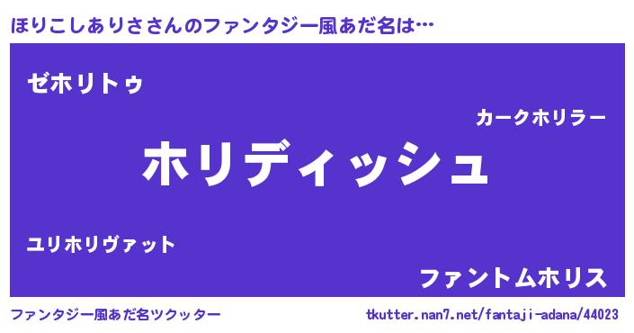 | ヒーロー風カッコイイあだ名 | 『ネオホリコシアリサ』『黄金騎士ホリ』 |