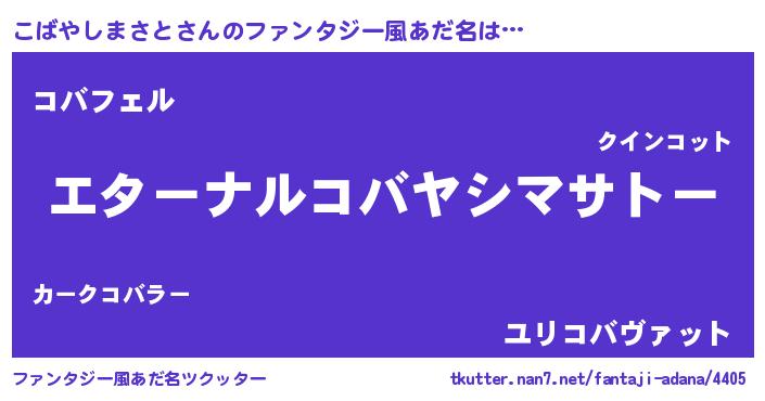 | 女子向けラノベタイトル風あだ名 | 『こばやしまさとの雑貨屋さん』 |