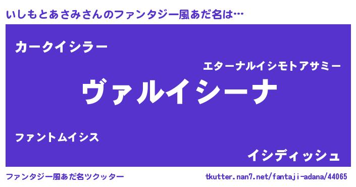 | 男性向けラノベタイトル風あだ名 | 『魔弾の王といしもとあさみ』 |