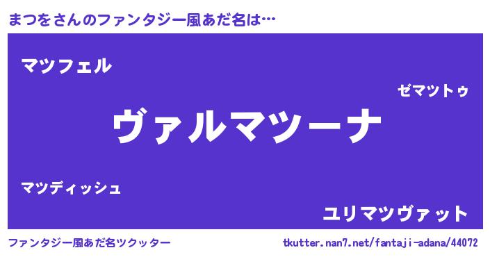 | 男性向けラノベタイトル風あだ名 | 『この素晴らしい世界にまつをを!』 |