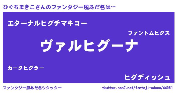 | 男性向けラノベタイトル風あだ名 | 『魔弾の王とひぐちまきこ』 |