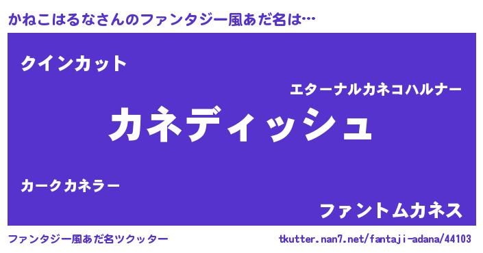 | 意味不明あだ名 | 『永久保存かねこはるな』 |