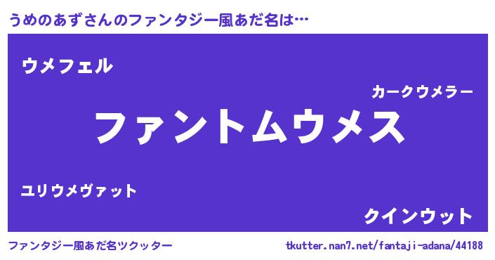| 女子向けラノベタイトル風あだ名 | 『うめのあずは平凡を望む』 |