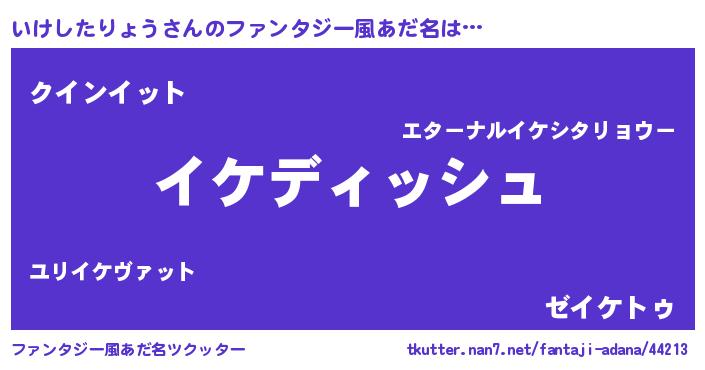 | 胡散臭い通販商品みたいなあだ名 | 『来世でも幸せになれる水素水…その名も「いけしたりょう」』 |