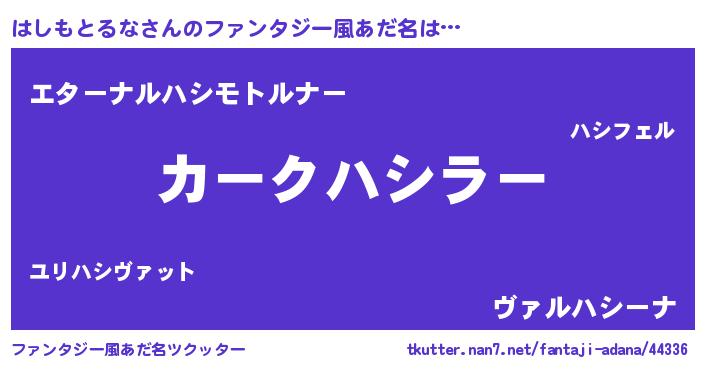 | 欧米人風あだ名 | 『はしもとるな・ステッグマイヤー』 |