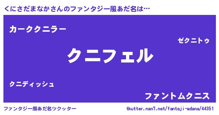 | 男性向けラノベタイトル風あだ名 | 『くにさだまなかの憂鬱』 |