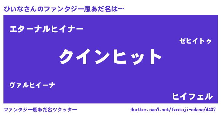 | 男性向けラノベタイトル風あだ名 | 『ひいなに滅ぼされるだけの簡単なお仕事です』 |