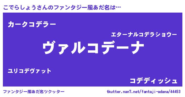 | 男性向けラノベタイトル風あだ名 | 『この素晴らしい世界にこでらしょうを!』 |