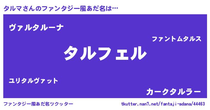 | ヒーロー風カッコイイあだ名 | 『スーパータルマ』『仮面タルダー』 |