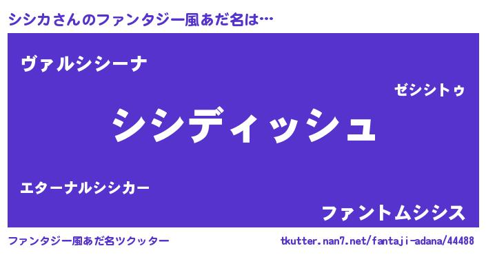 | 意味不明あだ名 | 『永久保存シシカ』『自称シシカ』 |