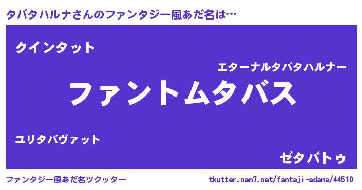 | 意味不明あだ名 | 『とにかく怪しいタバタハルナ』 |