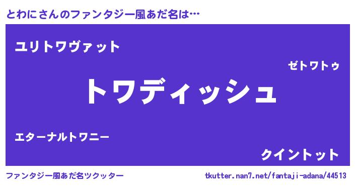 | ポケモン風あだ名 | 『ゼニトワ』『トワゴンZ』 |