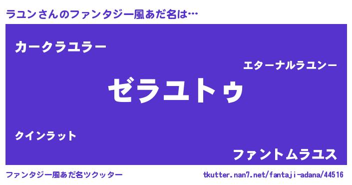 | ヒーロー風カッコイイあだ名 | 『超時空戦士ラユン』『天弓騎士ラユ』 |
