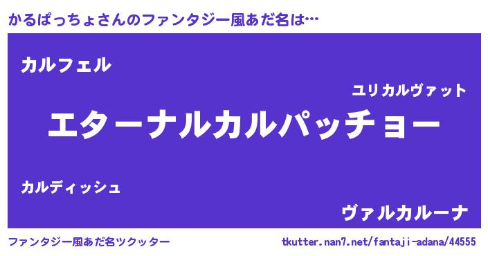 | 男性向けラノベタイトル風あだ名 | 『やはりかるぱっちょの青春ラブコメはまちがっている 』 |