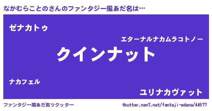 | 男性向けラノベタイトル風あだ名 | 『おまえをオタクにしてやるから、俺をなかむらことのにしてくれ! 』 |