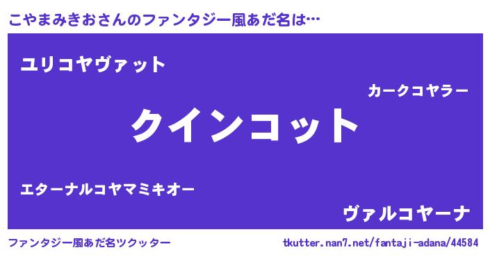 | 男性向けラノベタイトル風あだ名 | 『ノーゲーム・ノーコヤマミキオ』 |