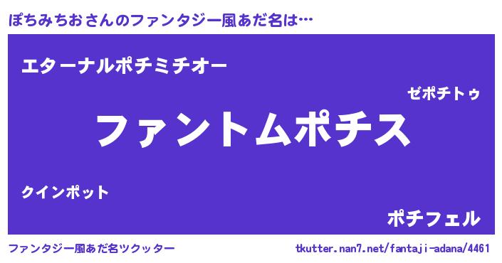 | 男性向けラノベタイトル風あだ名 | 『ぽちみちおの嫁は女の子じゃないと思った?』 |