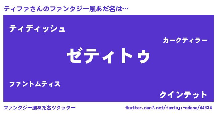 | 意味不明あだ名 | 『自称ティファ』『永久保存ティファ』 |