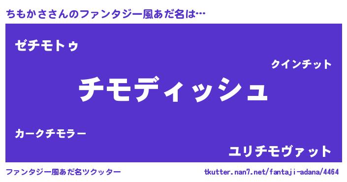 | 男性向けラノベタイトル風あだ名 | 『ちもかさという概念が存在しない退屈な世界 』 |