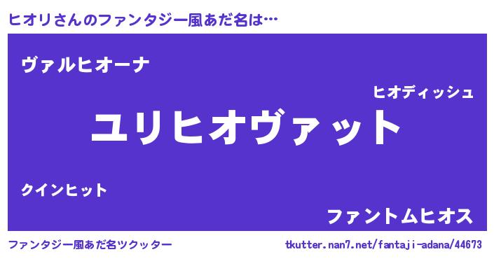 | 男性向けラノベタイトル風あだ名 | 『ヒオリ~年齢イコール彼女いない歴の魔法使い~』 |