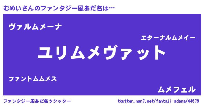 | ヒーロー風カッコイイあだ名 | 『仮面ムメダー』『スーパームメイ』 |