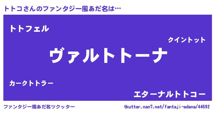| 意味不明あだ名 | 『住所不定無職トトコ(7歳)』『自称トトコ』 |
